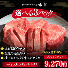 昆布締め牛タン選べる3パックセット 250g×3