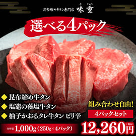 昆布締め牛タン選べる4パックセット 250g×4